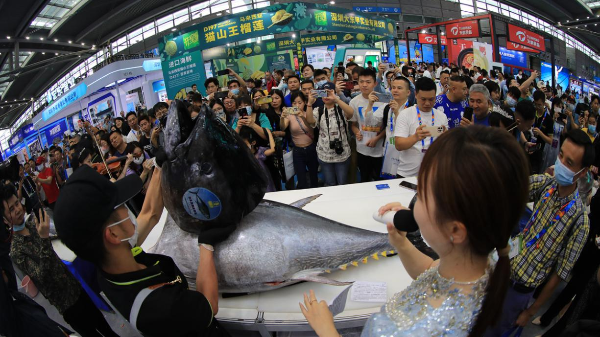 Une autre cérémonie de découpe du thon a eu lieu le 12 mai, au cours de laquelle le Shenzhen Liancheng Overseas Fishery Group a présenté un thon rouge de plus de 400 kilogrammes, le « roi du poisson » le plus lourd de l'histoire de l'exposition chinoise sur la pêche.