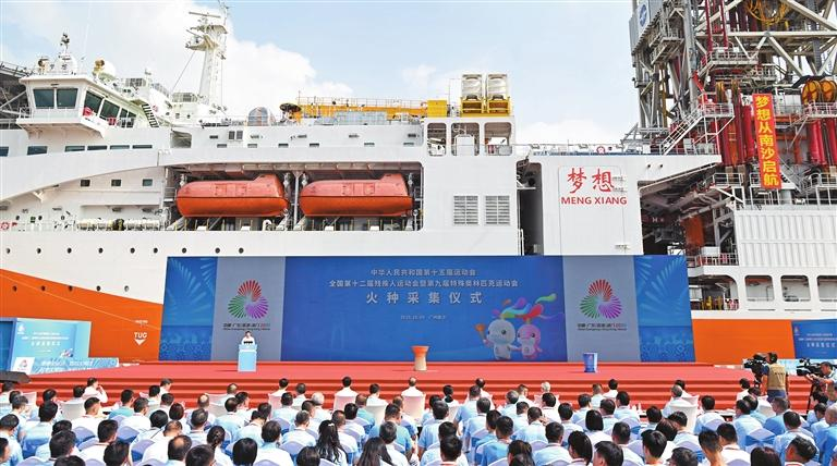 La cérémonie d'allumage de la flamme des 15e Jeux nationaux, des 12e Jeux nationaux pour personnes handicapées et des 9e Jeux olympiques spéciaux nationaux s'est déroulée jeudi dans l'arrondissement de Nansha à Guangzhou. Xinhua