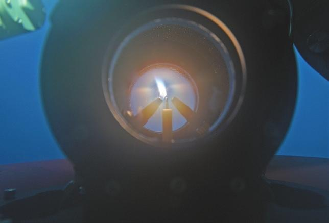 Le réceptacle allume la « flamme source » sur un fond marin dans cette photo prise le 18 septembre. Xinhua