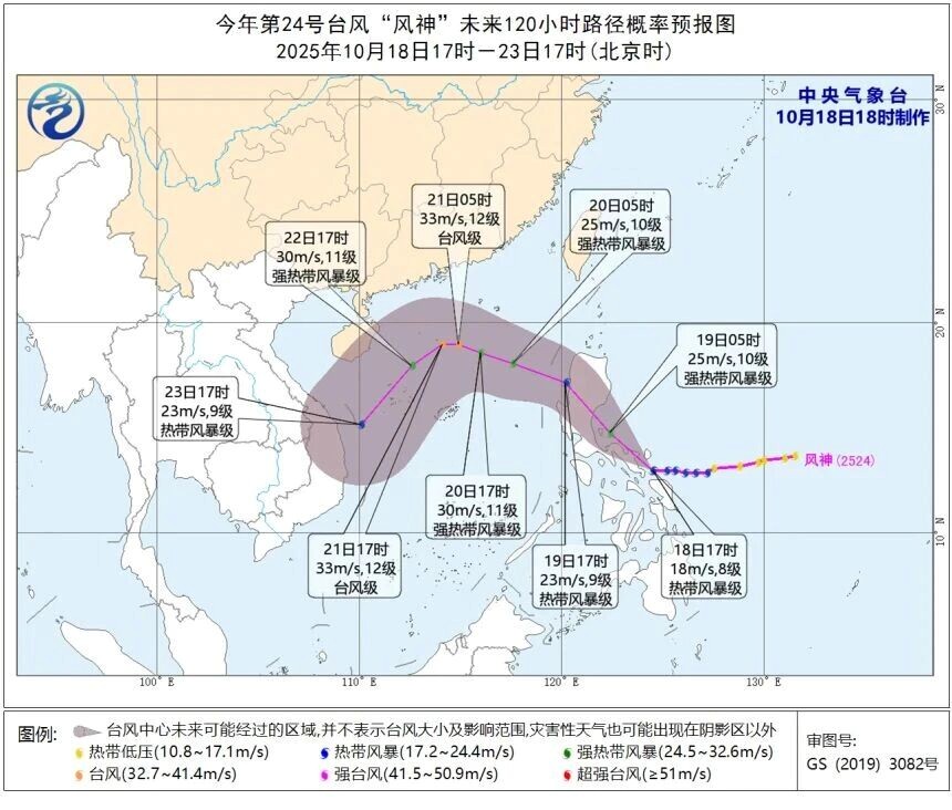 À 8 heures ce matin, le centre du typhon Fengshen, le 24e typhon de l'année, se trouvait au-dessus de Luzon, aux Philippines, à environ 1 220 km de Shenzhen. Se déplaçant vers le nord-ouest à environ 35 km/h, la tempête devait entrer dans la mer de Chine méridionale dans la soirée et se diriger vers les eaux sud-est au large de l'île de Hainan.